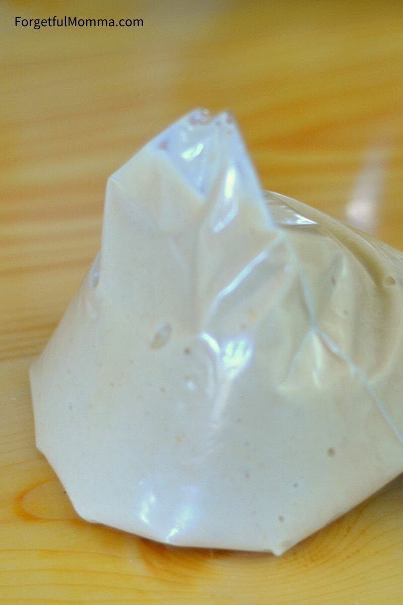 - Cut off corner of bag. It is a thick batter so take that into consideration when you cut off the corner.