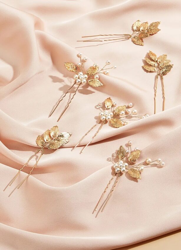 - A vintage brooch or sparkling hairpin offers a personal twist.