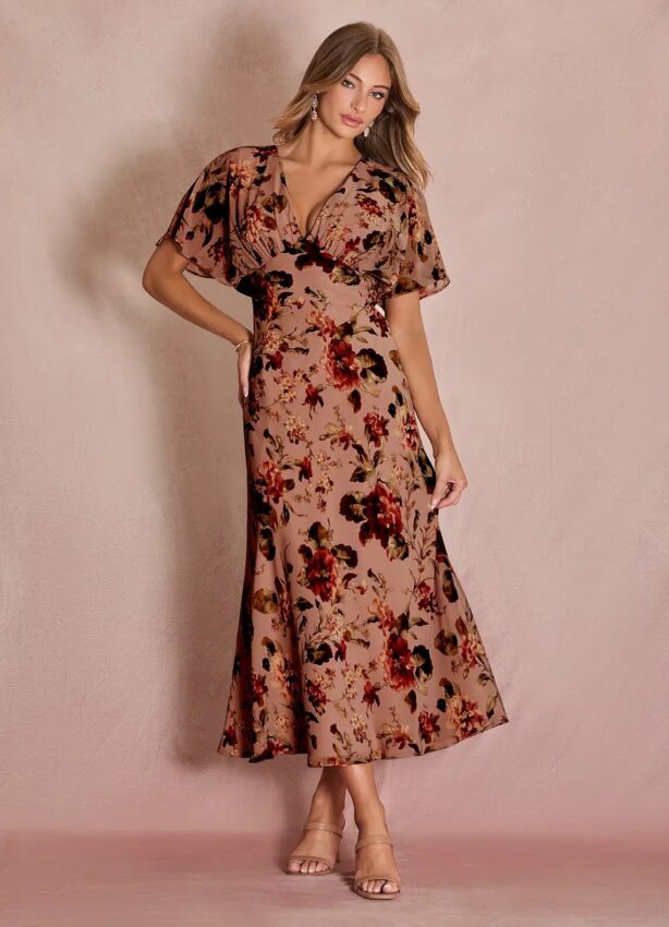 Fall weddings invite a mix of elegance and warmth. A velvet gown in burgundy, a satin midi in emerald, or a dark floral maxi each capture the season’s charm. Accessories such as pearl earrings, metallic clutches, or ankle boots can bring the whole look together. Comfort and weather awareness add the final touch, making your evening enjoyable from start to finish.